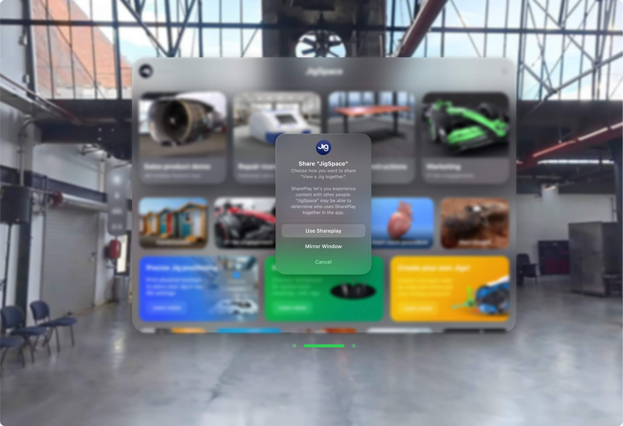 After choosing which method, and connecting with your viewers, select Use SharePlay from the "Share JigSpace" popup.