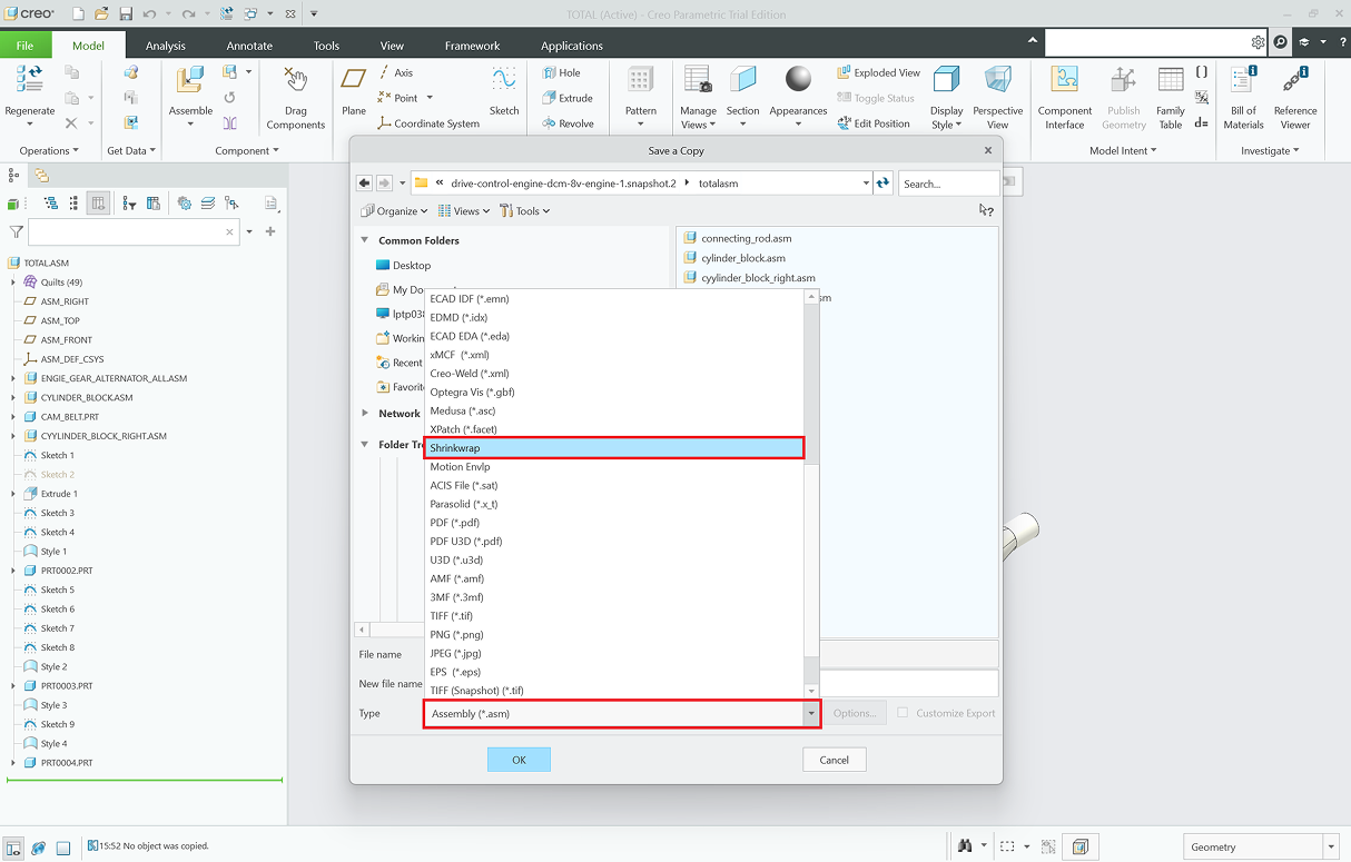 Before you begin, consider which components, sub-assemblies, or features will need independent movement in JigSpace, as these should be simplified or shrinkwrapped separately. PTC claims that shrinkwrapping can reduce memory usage by up to 90%, depending on the complexity of your model, your quality settings, and number of hidden parts.