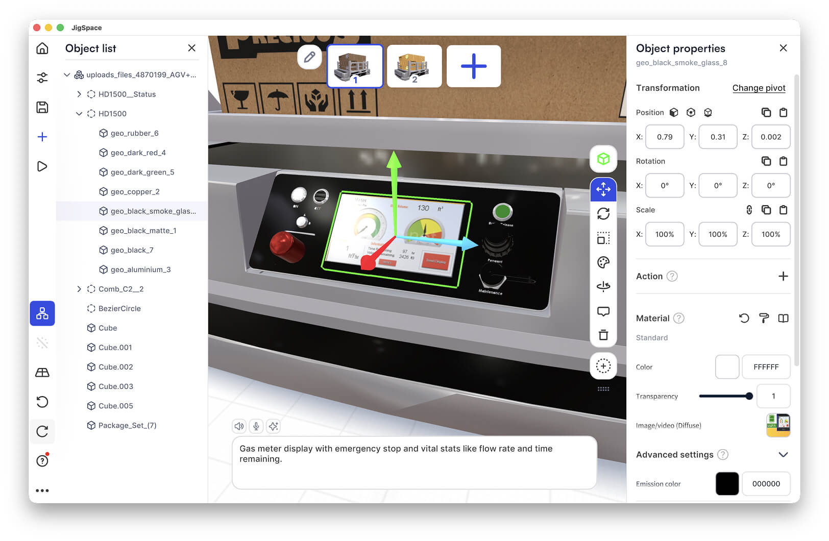 We also import PBR materials settings with supported models, including STEP and SolidWorks, to save you time re-adjusting transparency, metallic, roughness, or occlusion settings in JigSpace.